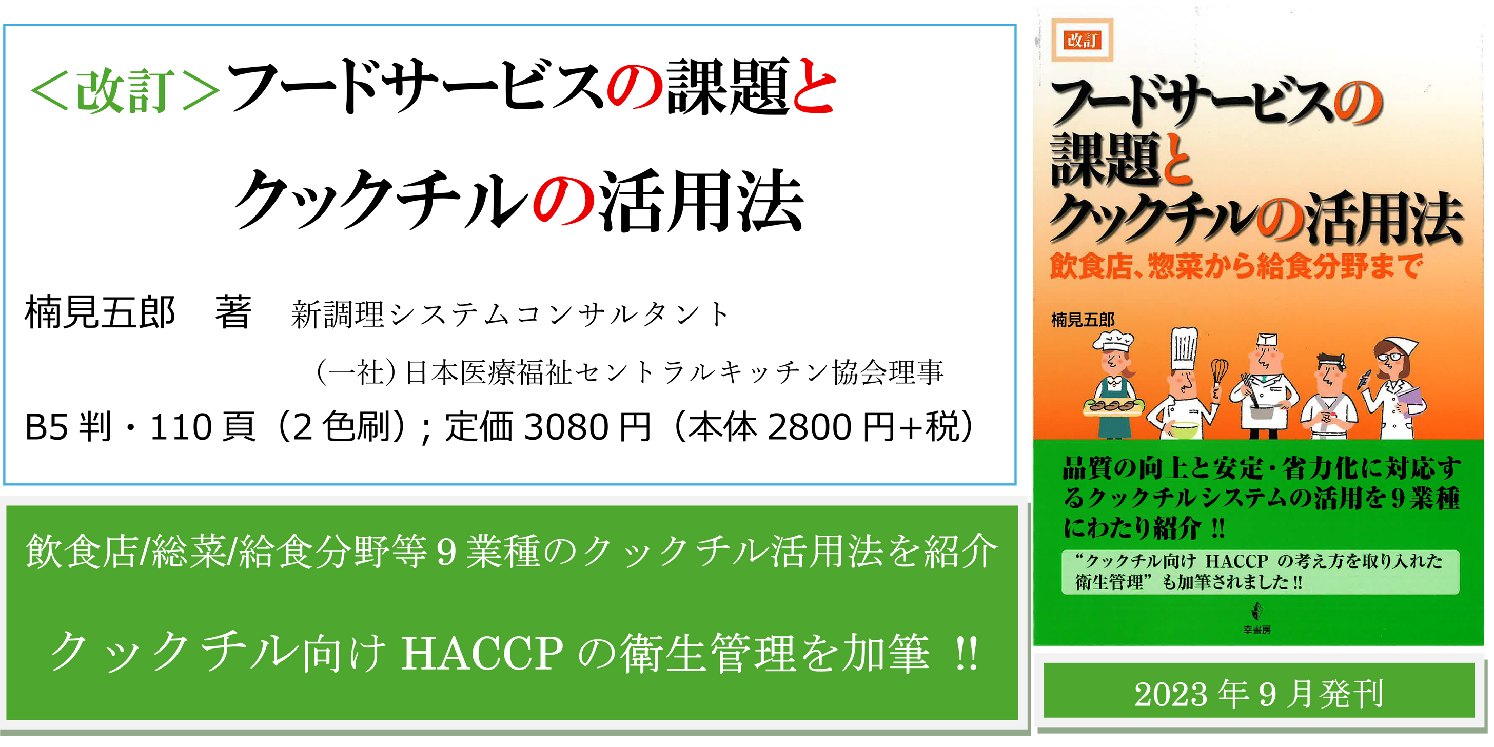 本書は改訂版(第二版)で、主として国により制度化された「HACCP の考え方を取り入れた衛生管理」をクックチルに適用する方法を加筆して解説しています(第4章)。